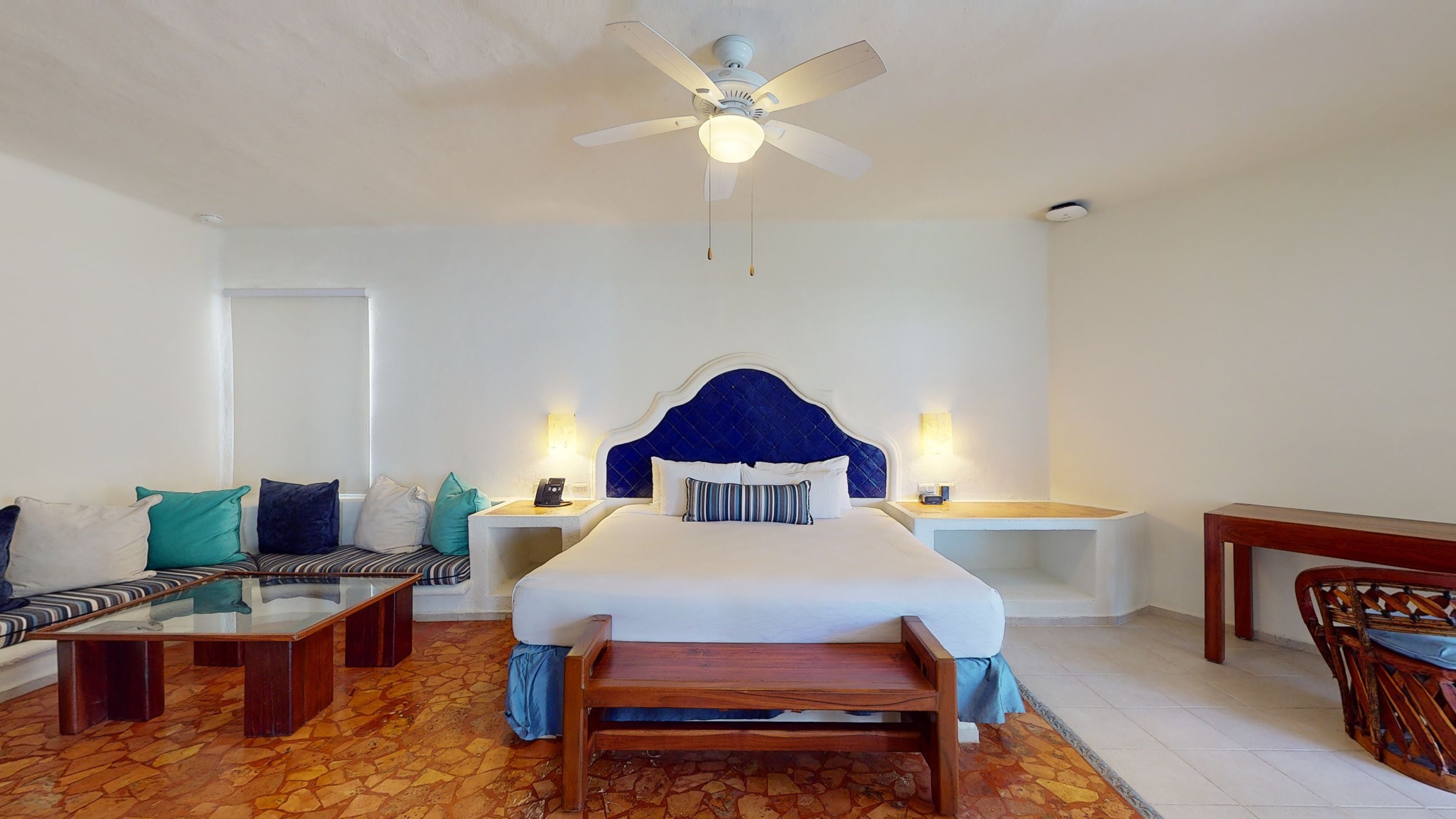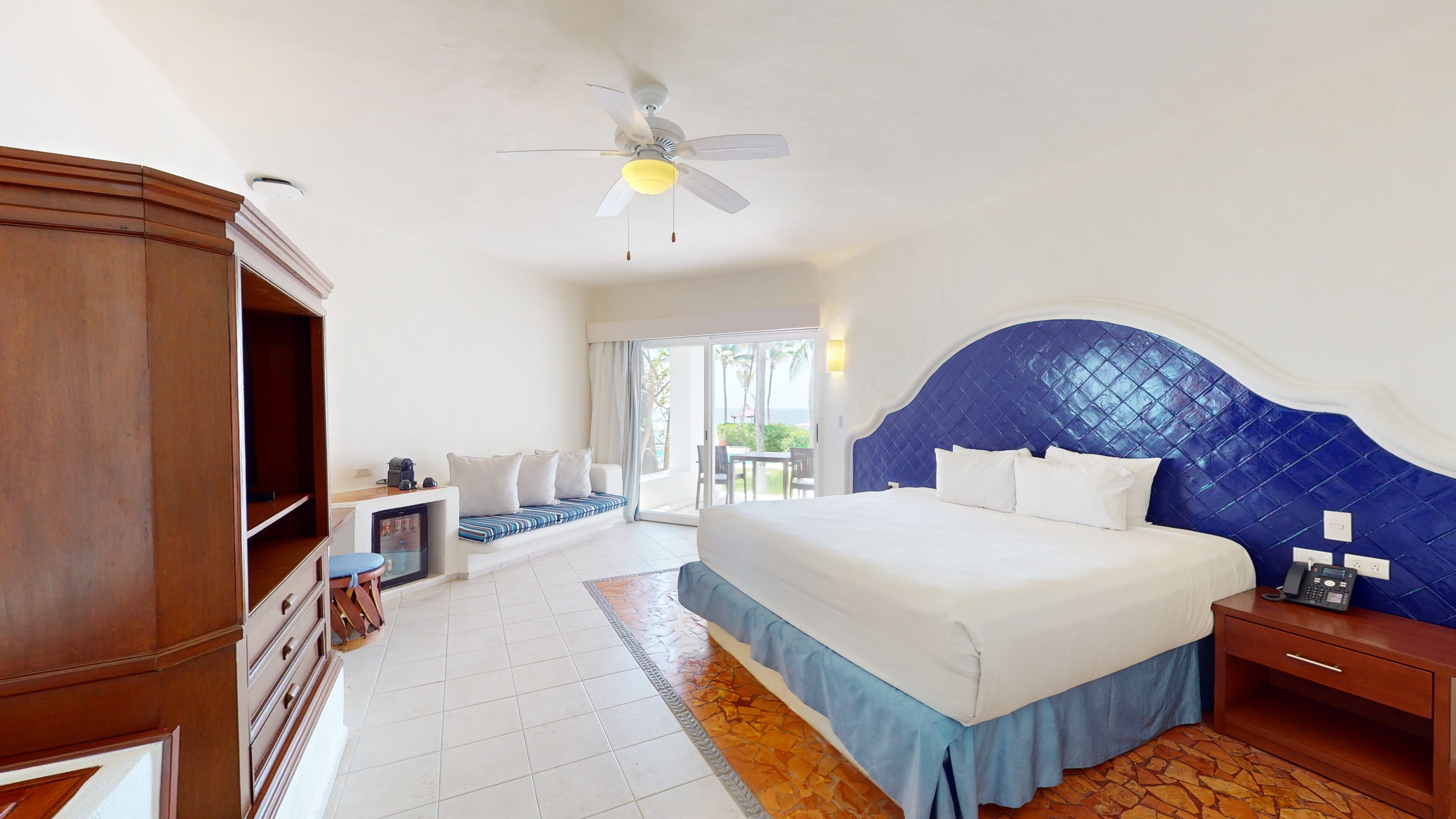 The Mansion Swim-Up Suites are designed to offer a luxurious, intimate hotel experience. These suites feature a comfortable king-size bed, sitting room, bathroom with separate shower, double vanity, and a spacious closet. What’s more, you can enjoy a private terrace with views of the solarium, and a private pool for unforgettable moments with your partner.