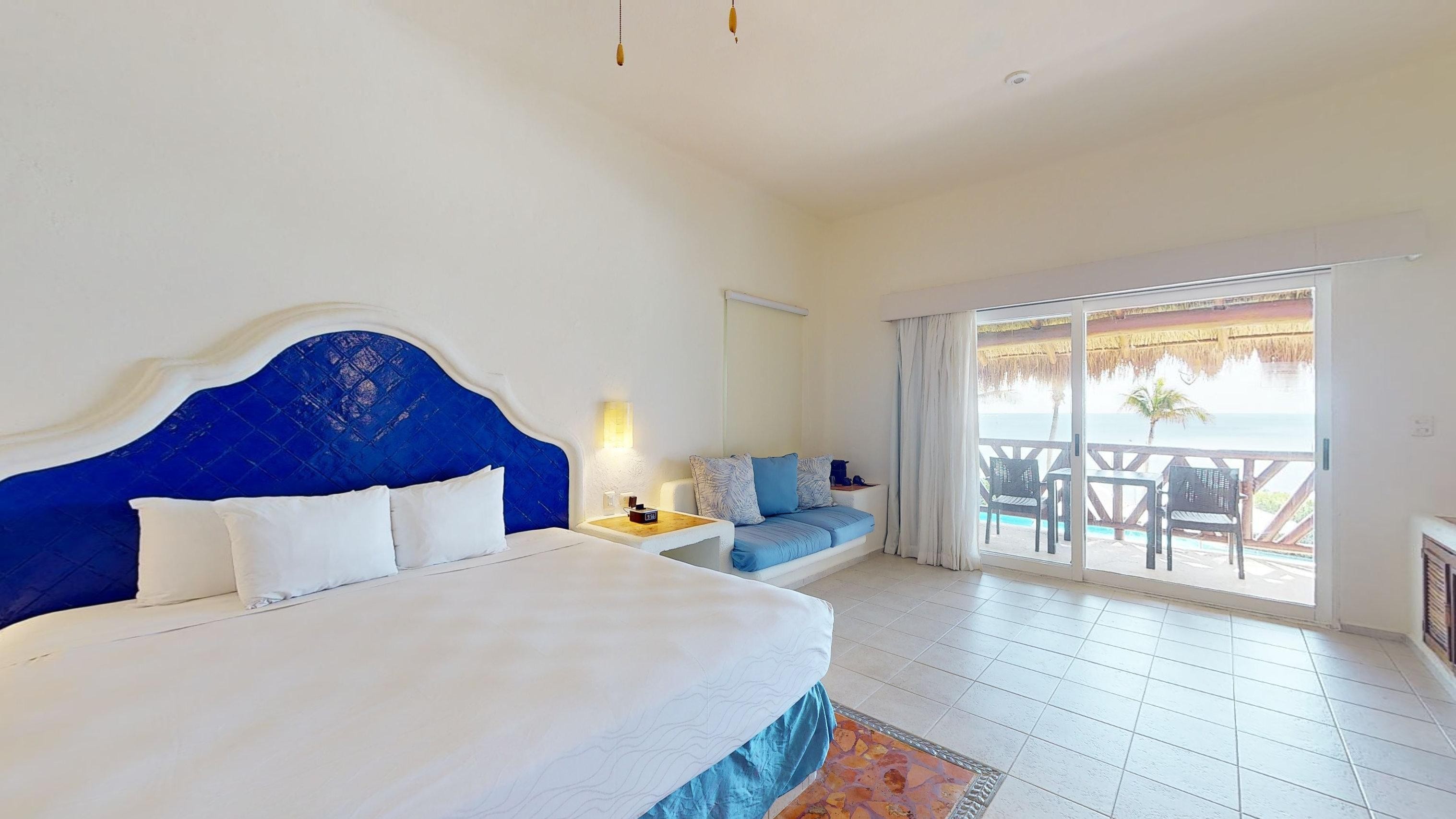 Adding even more seduction to your clothing-optional vacation, this intimate room features a king-size bed with a balcony or terrace, a sitting area, bathroom with separate shower and bathtub, plus exclusive bath amenities.
