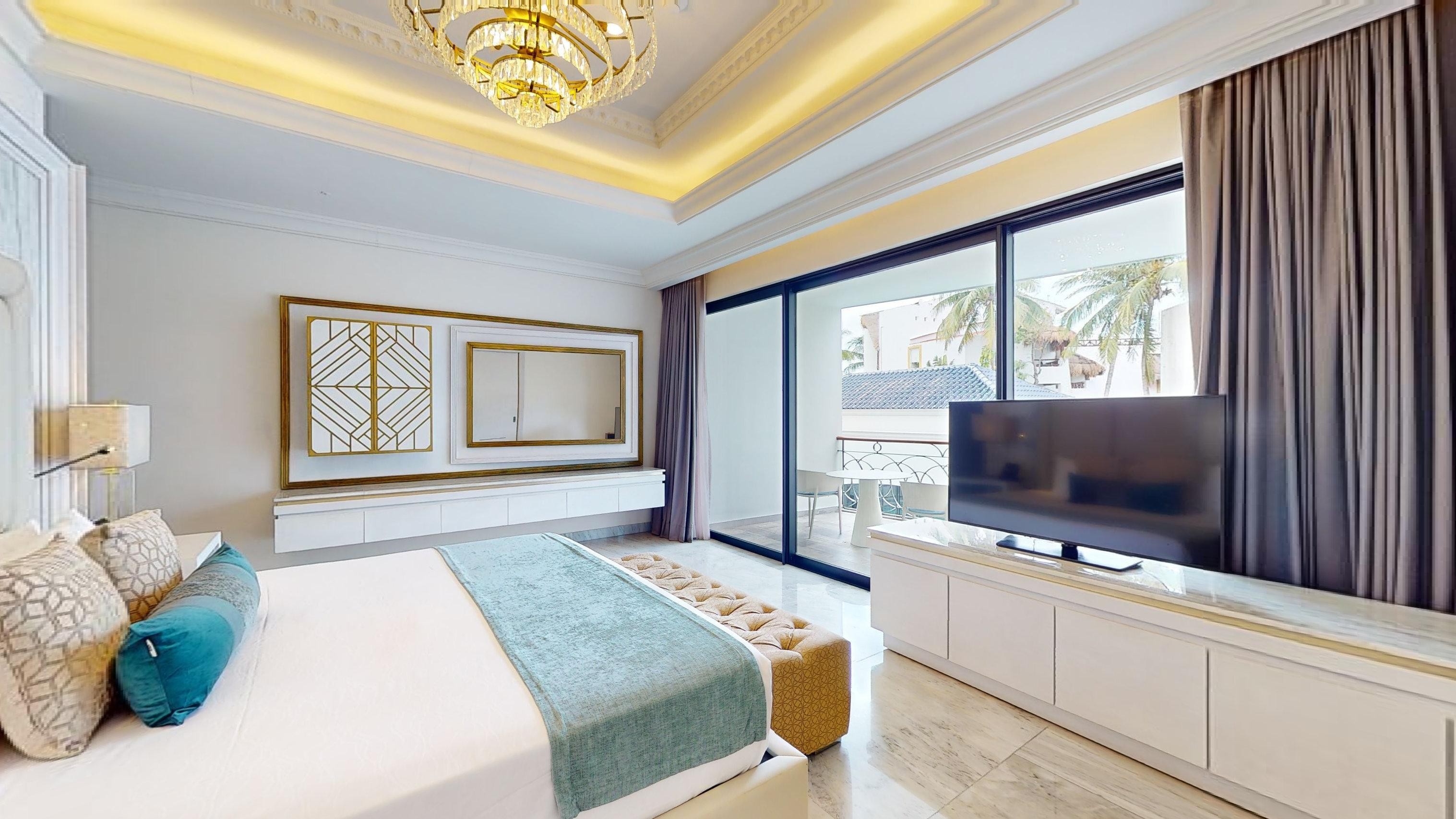 Enjoy an unforgettable experience in this suite with its own balcony and private pool, which will not only give you a superb view of the sea, but also intimacy with your partner. What’s more, this suite includes a spacious bedroom and comfortable sitting room with a balcony or terrace, as well as a fully-equipped bathroom with separate bathtub and shower, and folding doors that offer a view to the bedroom. For increased comfort, you’ll also find a 42” plasma TV, desk, and a second fully-equipped bathroom along with unique details that will complement your stay at the Desire Pearl Riviera Maya Resort.